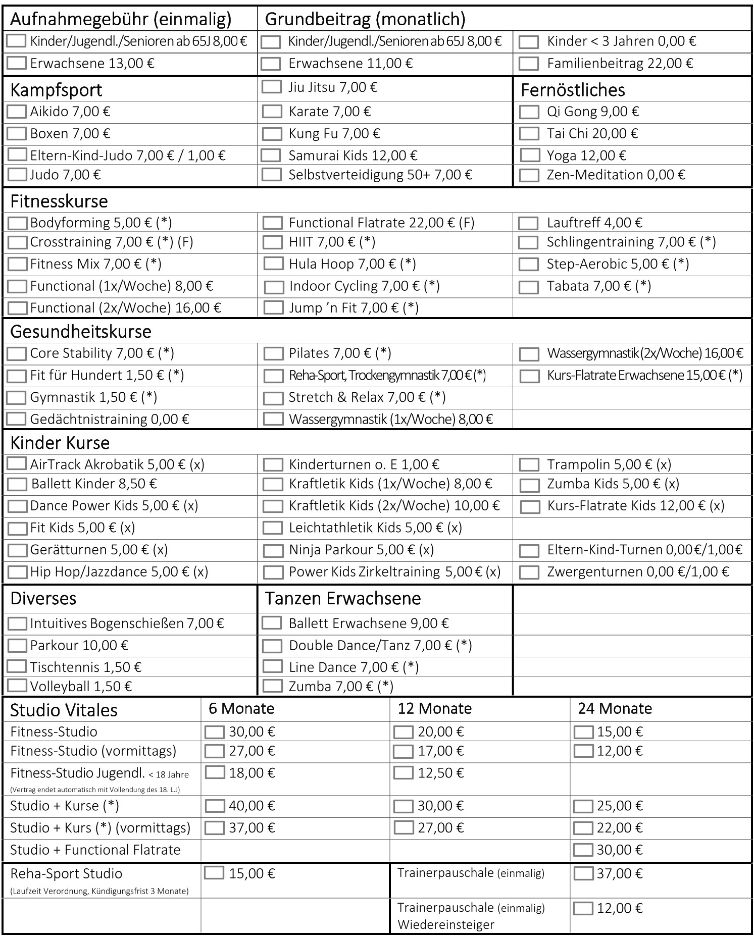 Die Beiträge findest du im Online-Aufnahmeantrag bei den jeweiligen Sportarten oder in der nachfolgenden Übersicht.