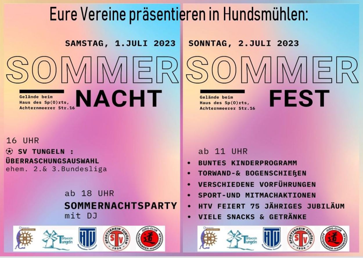 Am 01. + 02.07.2023 findet das diesjährige Sommerfest der Vereine aus Hundsmühlen und Tungeln statt.